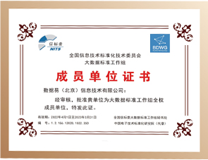 被评为全国信标委大数据标准工作组2020年“标准化工作先进单位”